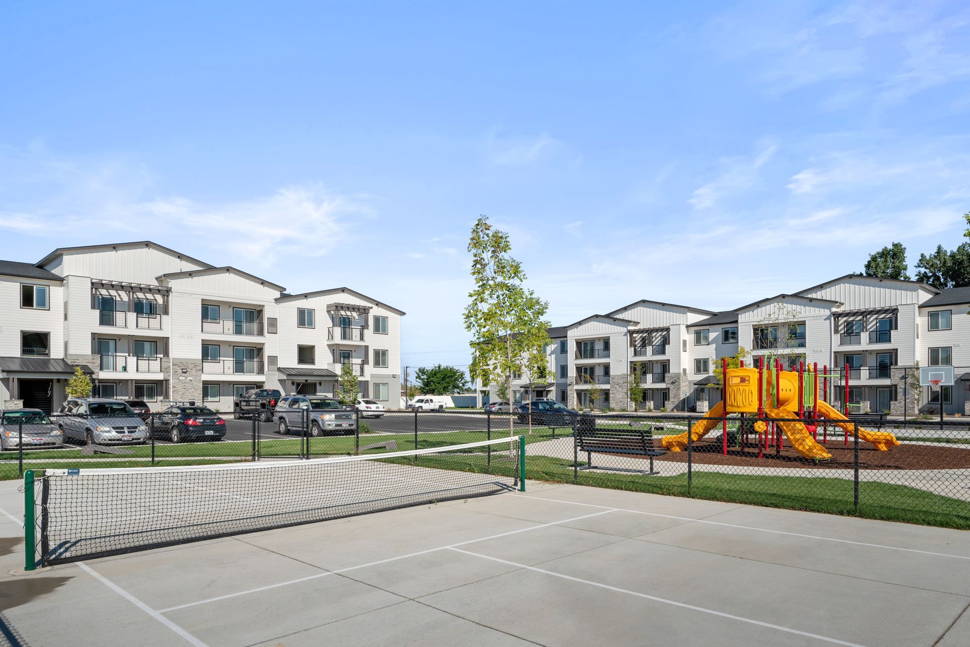 Located in Caldwell, ID., the Stone Creek Apartments included four 36-Unit buildings along with site amenities such as basketball, pickellball, corn hole, play ground, and dog park.